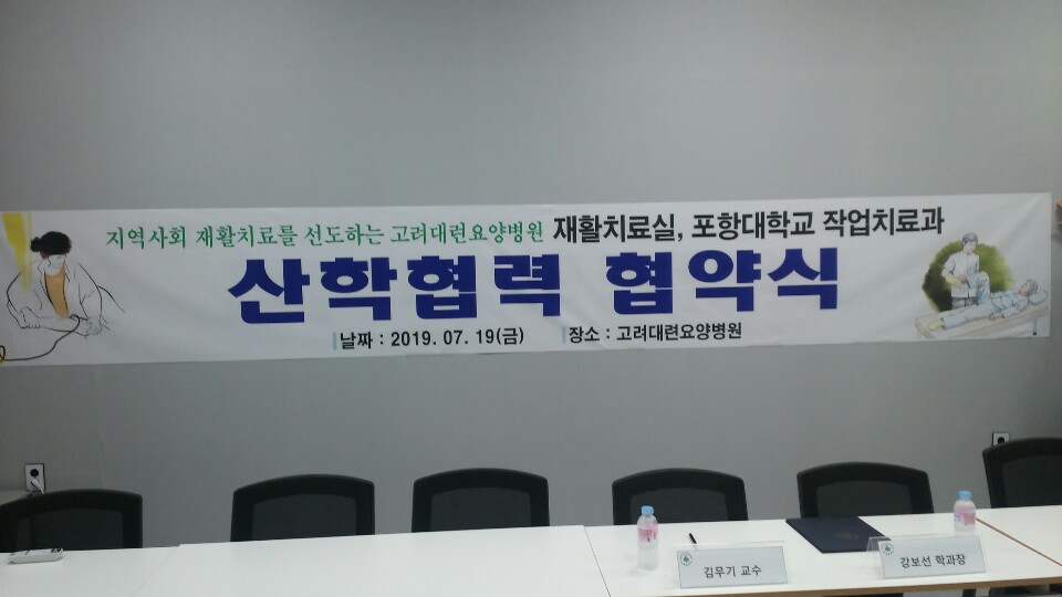 2019년 7월 19일 포항대학교 작업치료과 &고려대려요양병원과 협약식이 있었습니다.